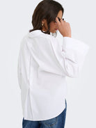 Complétez votre garde-robe avec cette chemise élégante pour femmes, en tissu tissé avec un col classique et des manches larges, idéale pour toutes les occasions.