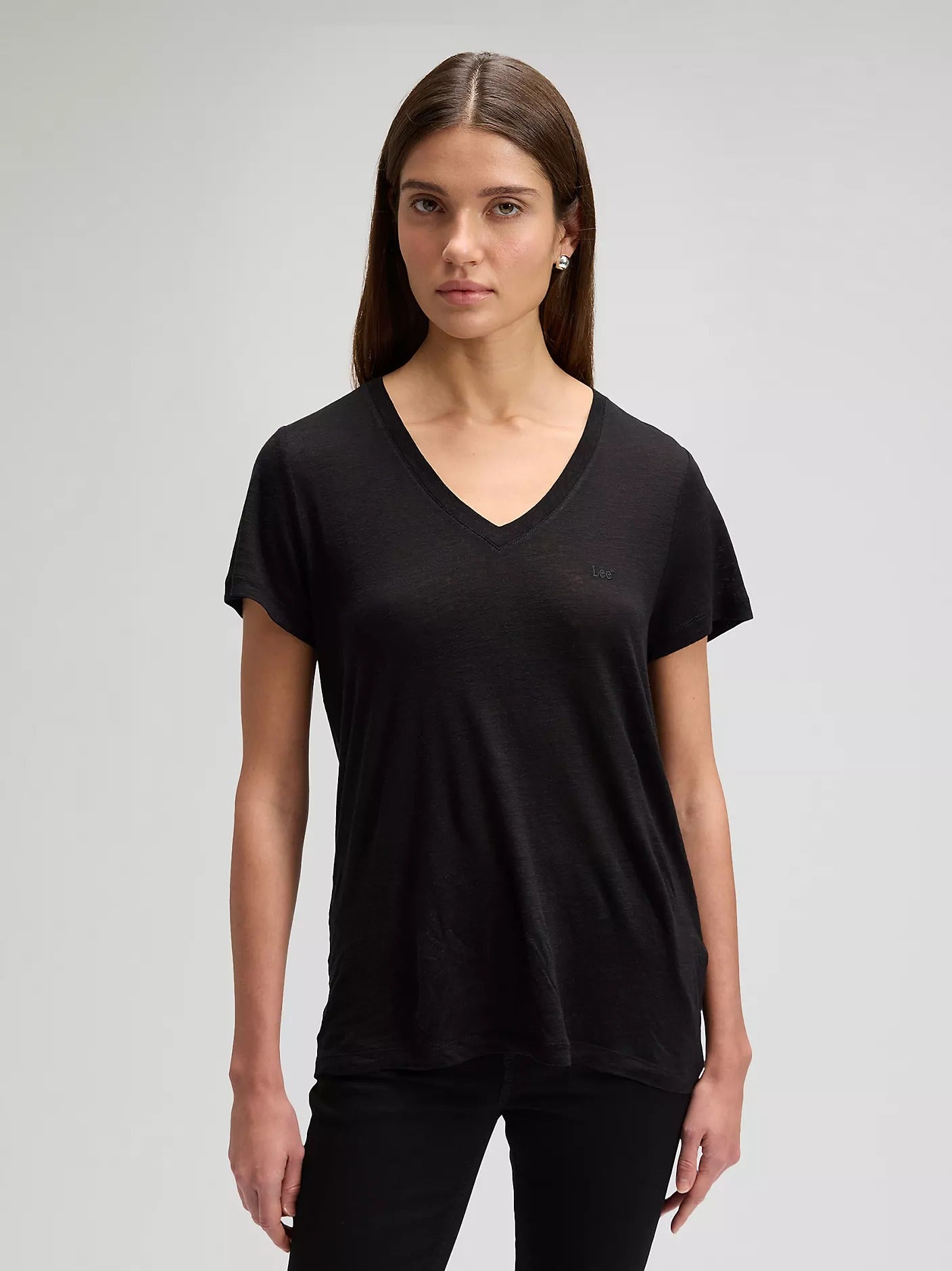 V NECK TEE BLACK,