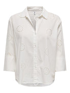- Design Femme : Col chemisier, manches longues volumineuses, poignets larges, détails broderie anglaise.