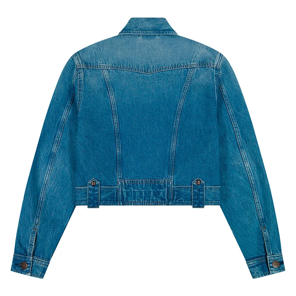 La veste Moto en denim 100 % coton présente une coupe regular, des brides à boucles à l’ourlet, des poches poitrine et la surpiqûre « W » emblématique, en hommage à ses racines western.