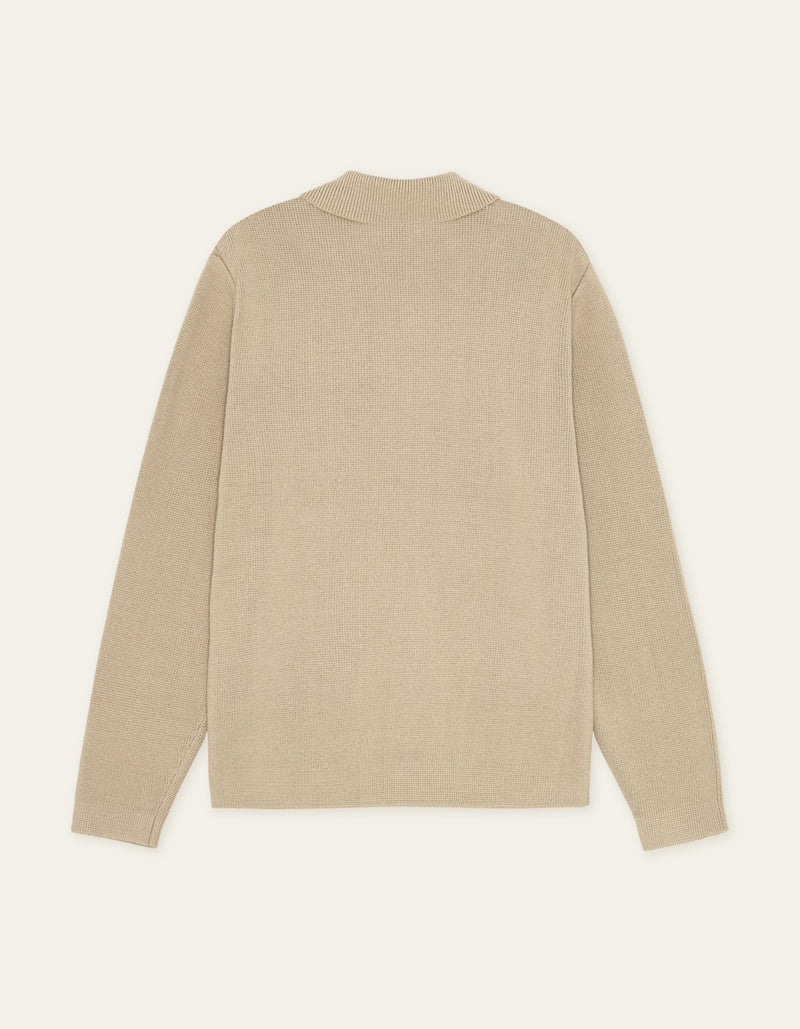 A structured knitted overshirt crafted in a heavy Milano knit for a clean, compact look. Designed with a classic collar and a straight silhouette, it works easily as a lightweight layer.