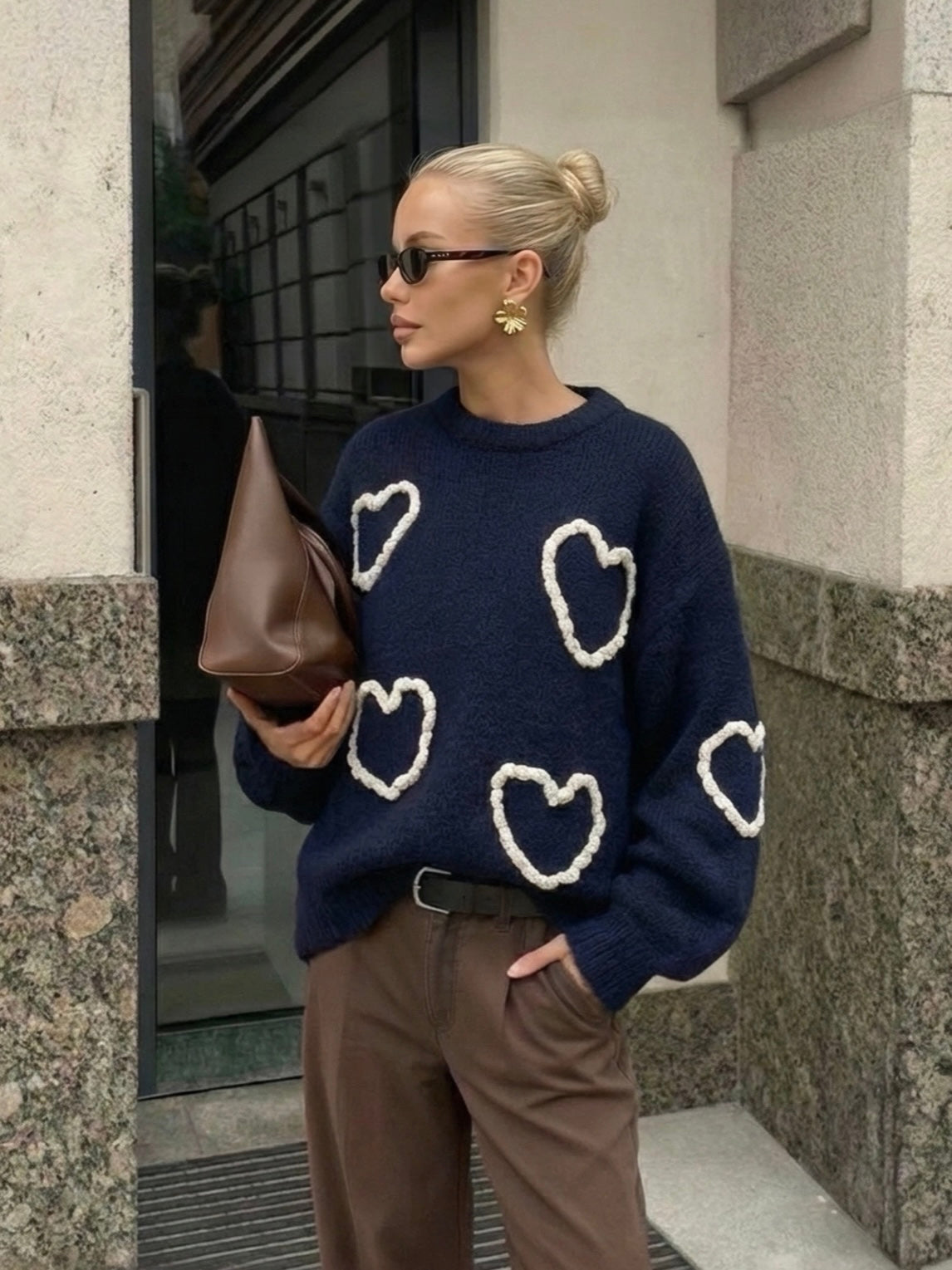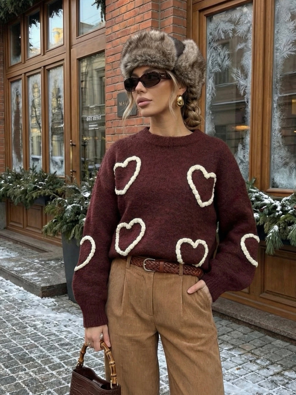 Copperose knit sweater with embroidered heart motifs – Softness and romantic spirit