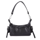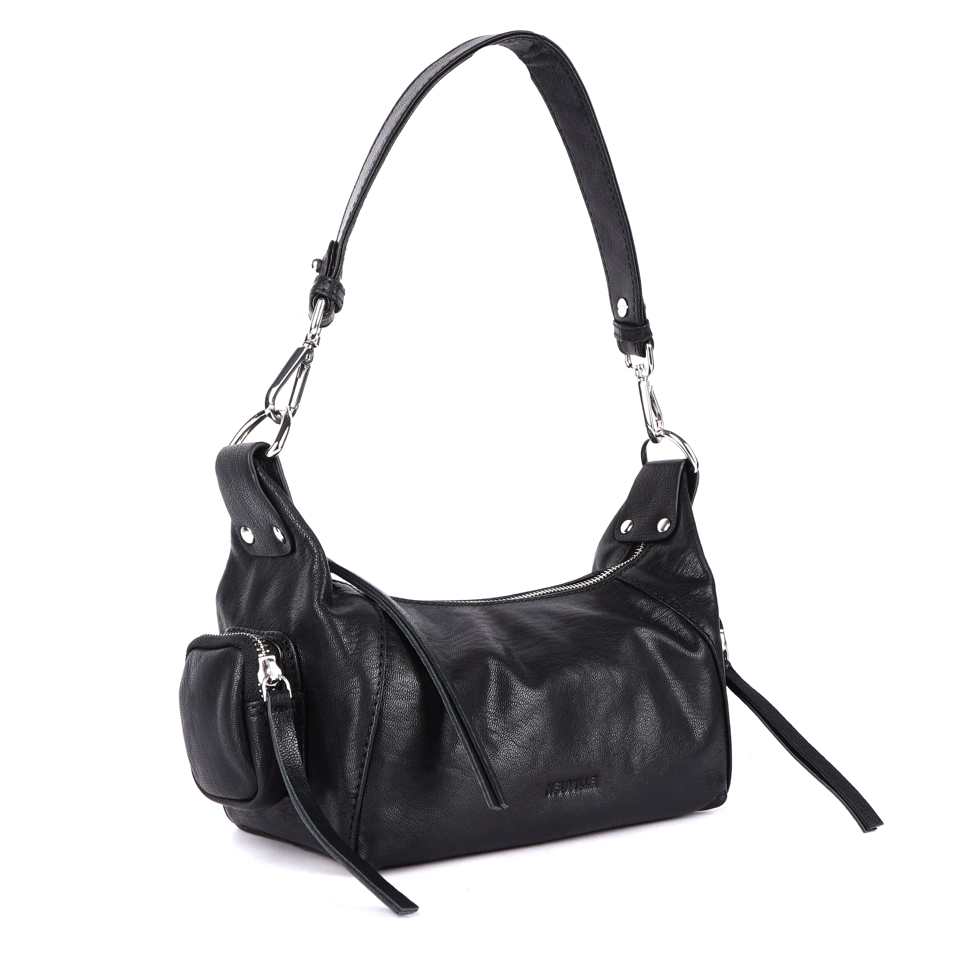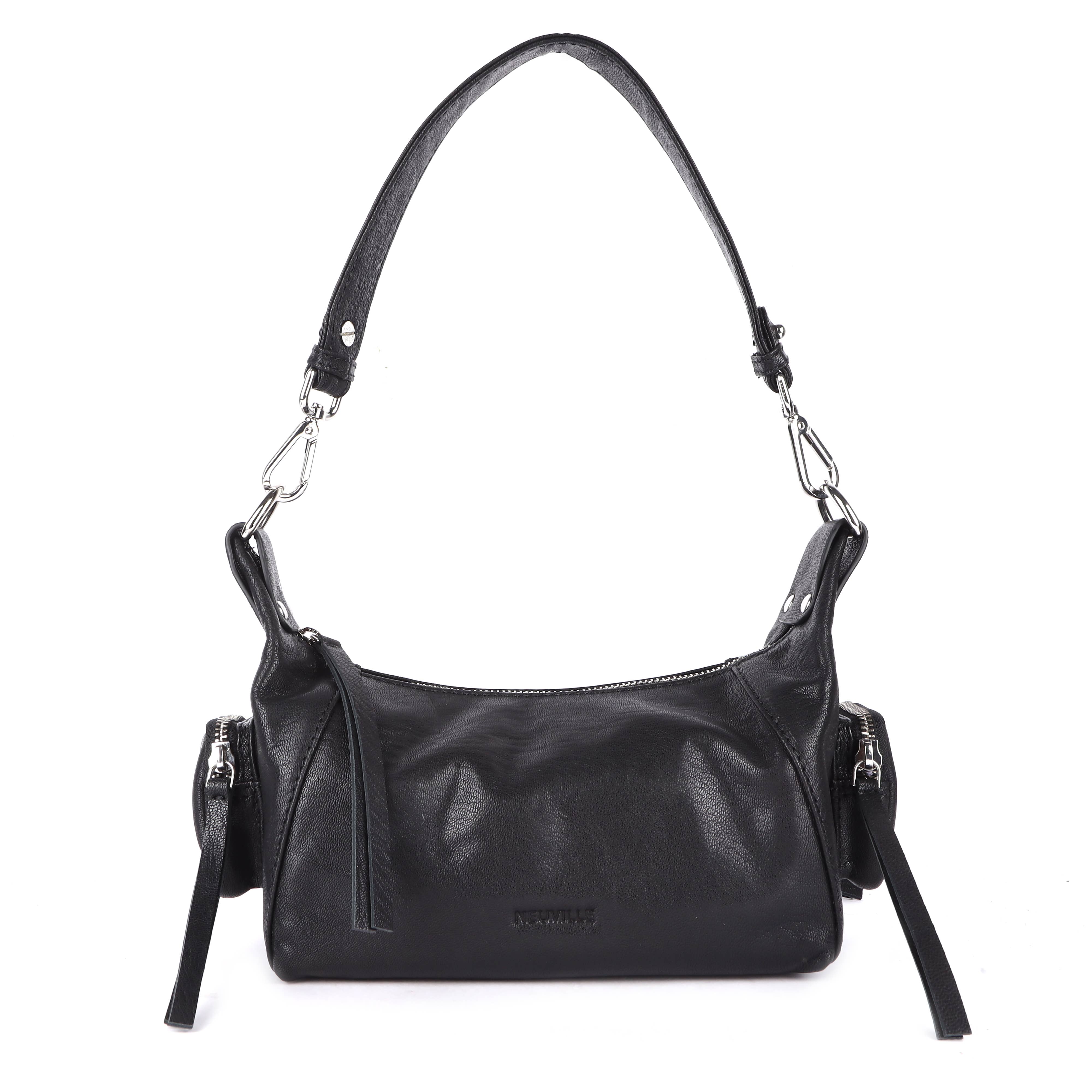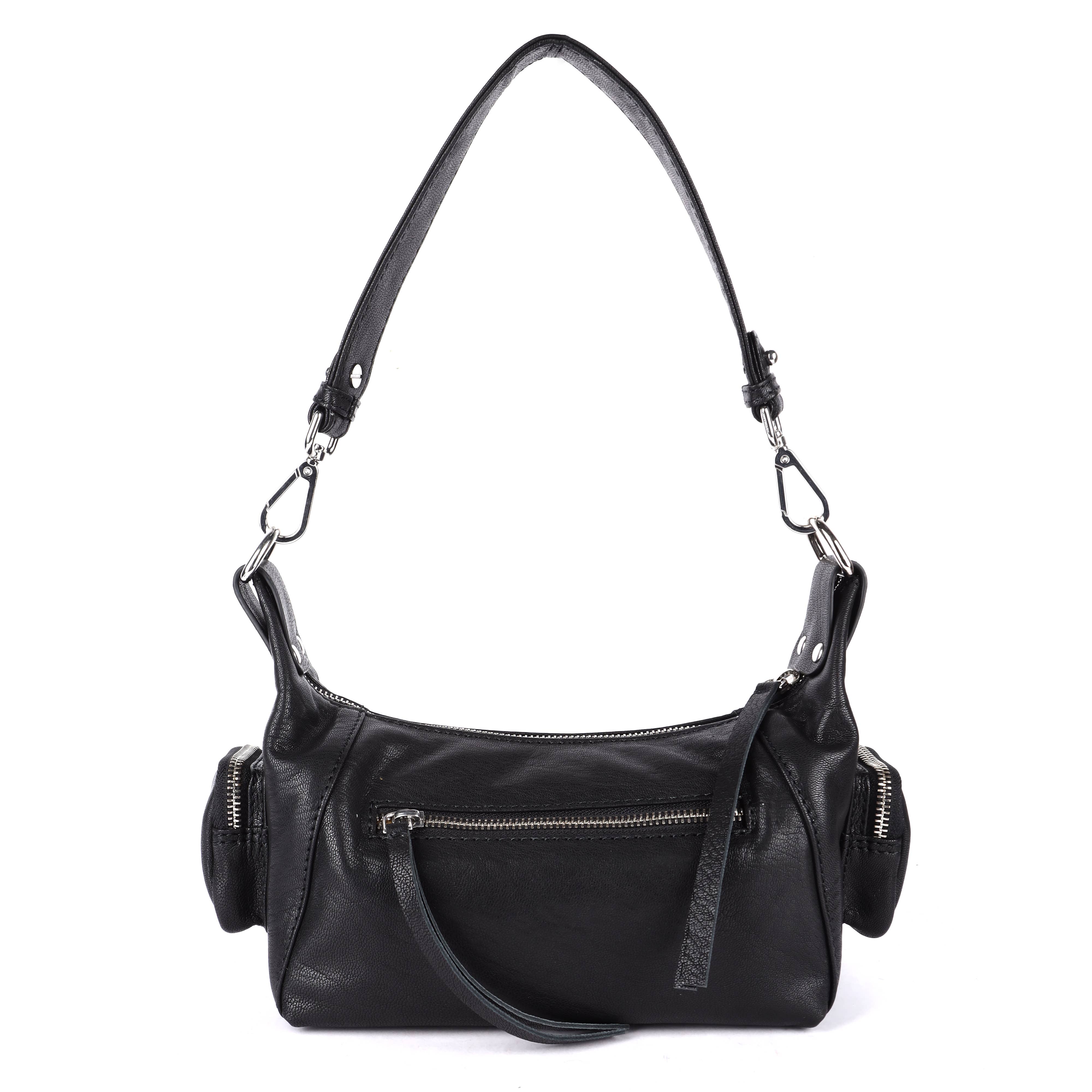 This pretty shoulder bag has a zipper on the back and two side pockets. The bag comes with only one strap, to be worn over the shoulder.