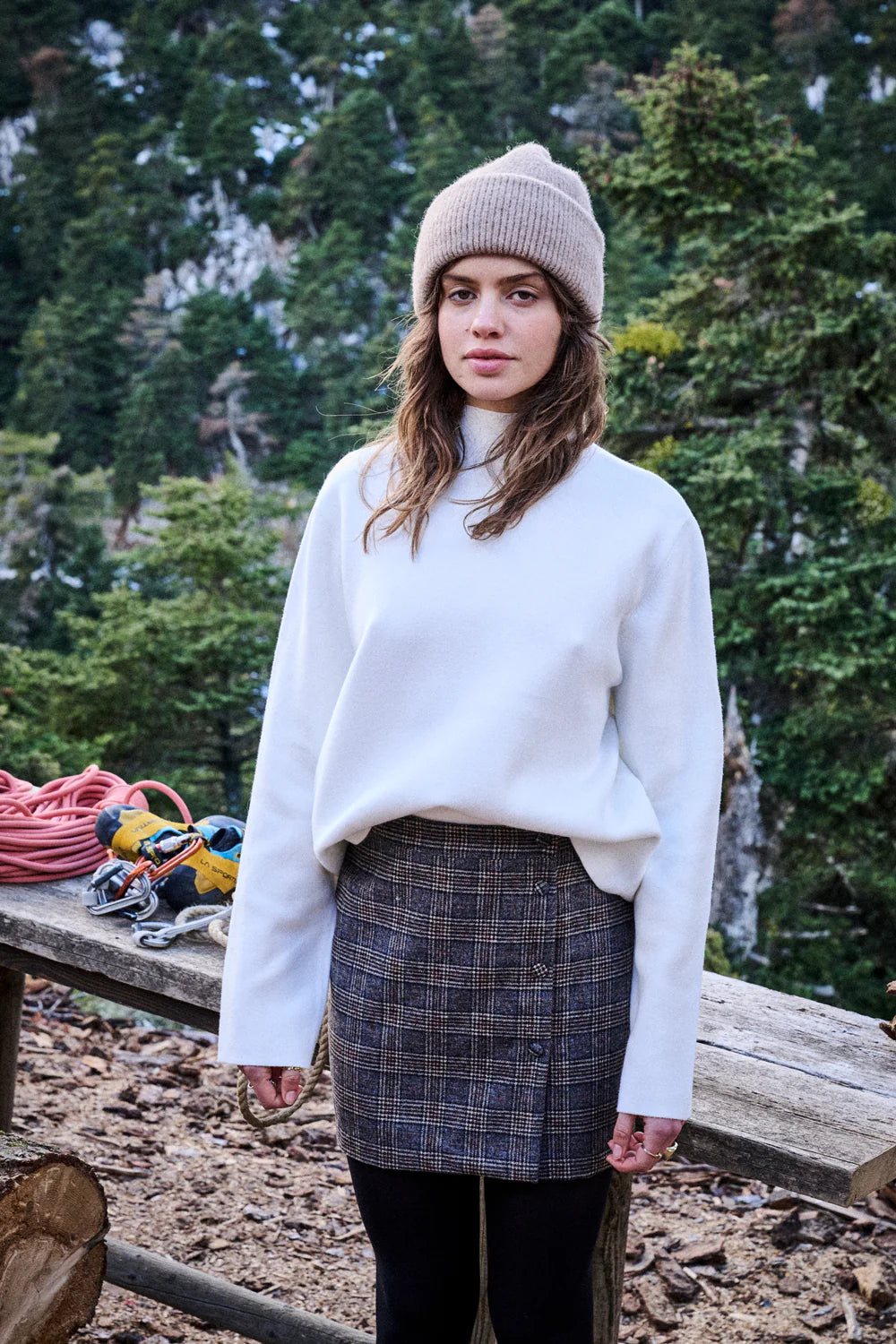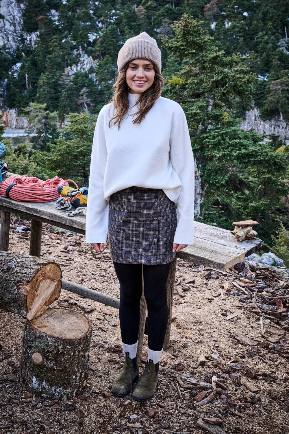 Wool plaid mini skirt – Buttoned wrap style