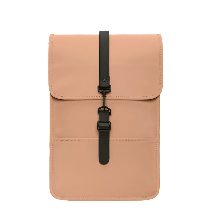 Backpack Mini is a downscaled version of Backpack. The silhouette is characterized by its prominent flap and central strap with carabiner closure. This clean and ever contemporary waterproof rucksack features an internal laptop pocket, a main compartment, and a concealed external phone pocket on the back panel.