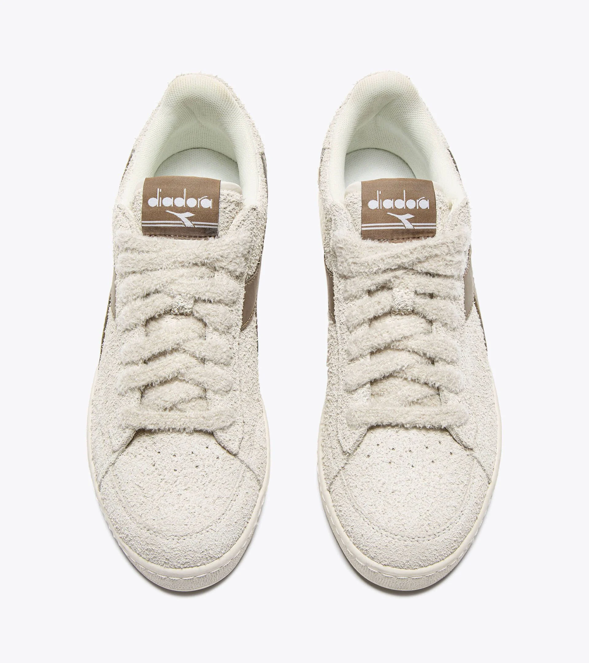 Détails iconiques : Logo Diadora contrastant et finitions soignées pour un look vintage affirmé.