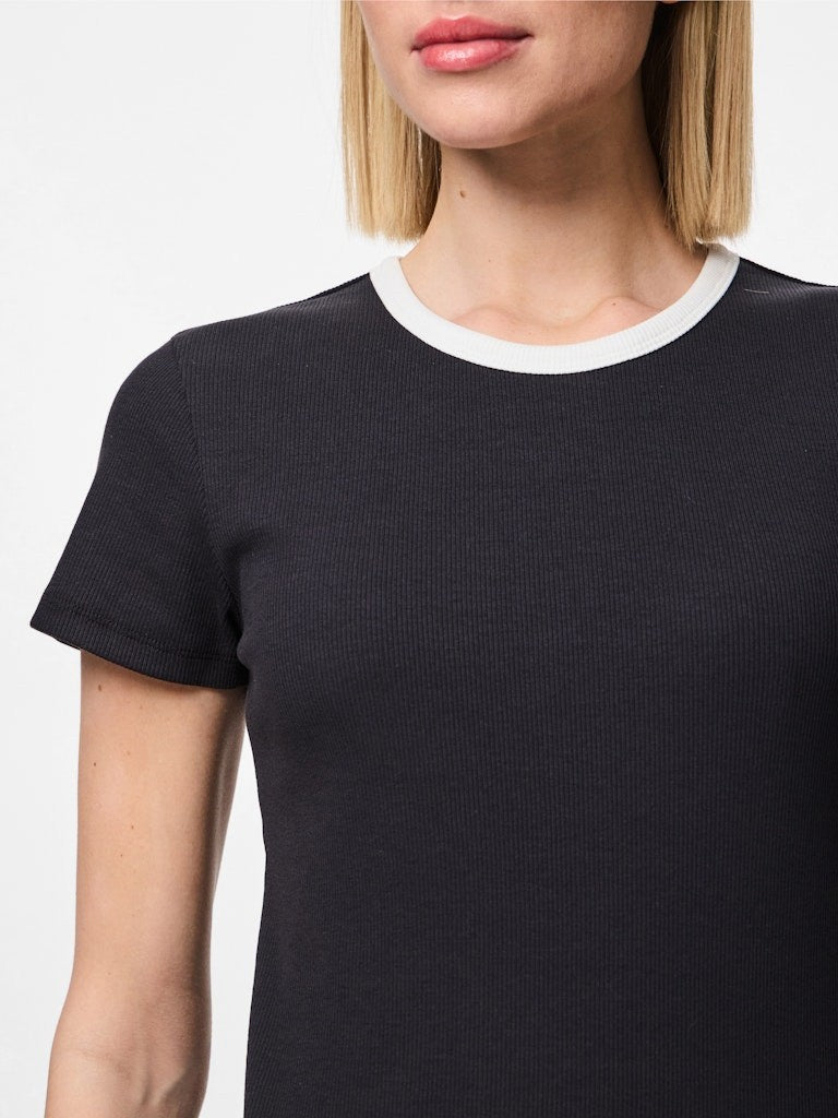 Ce T-shirt polyvalent est idéal pour un usage quotidien, en superposition ou seul. Sa maille rib garantit une extensibilité agréable.