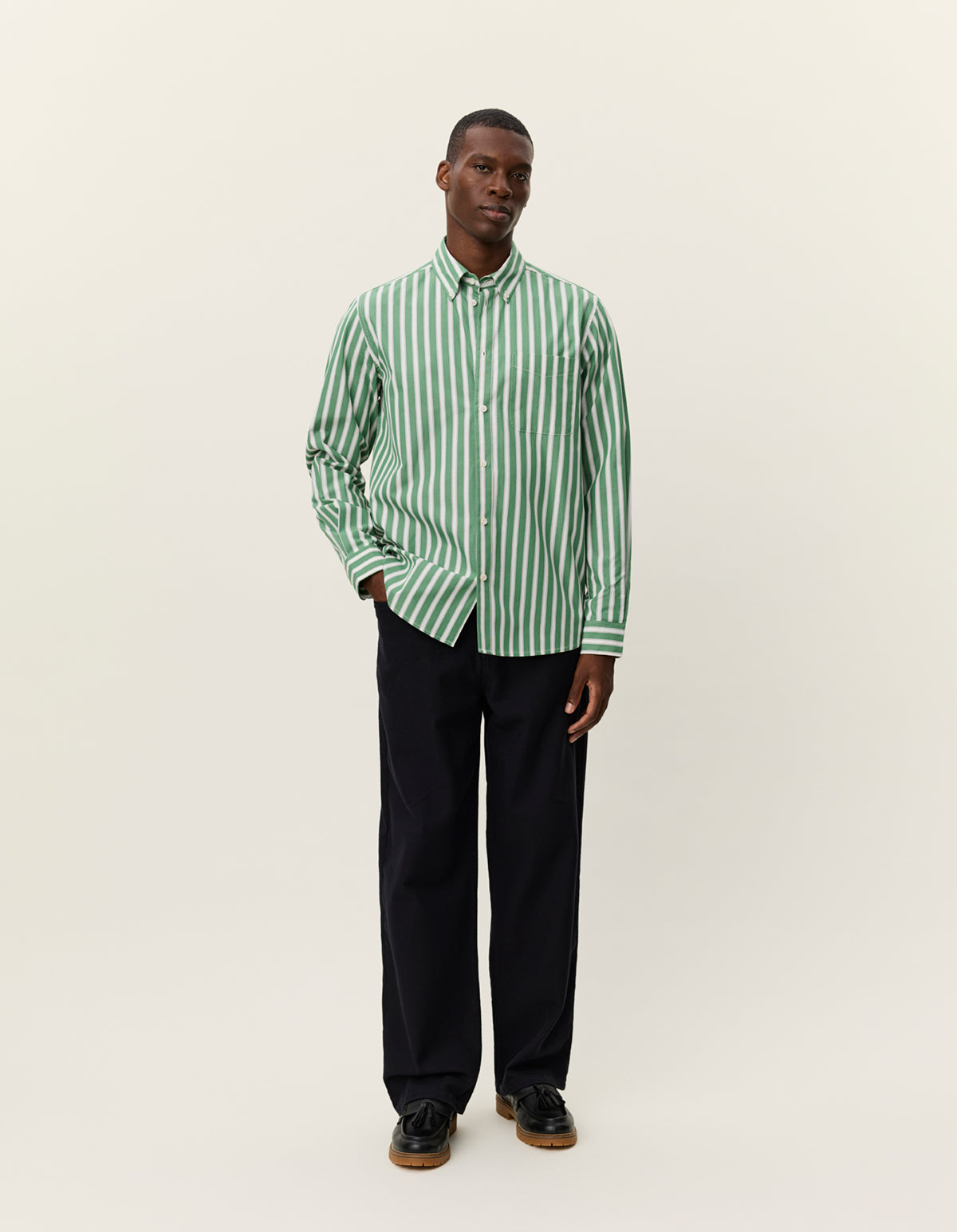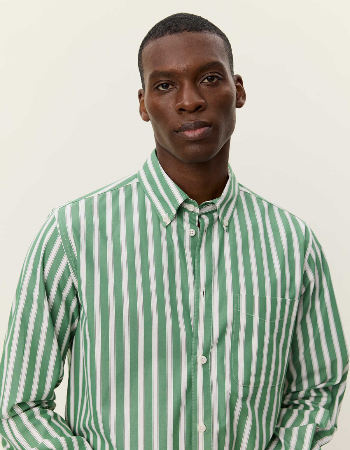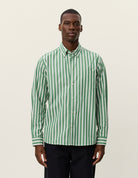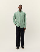 Kent Stripe Poplin Shirt - JUNIPER GREEN