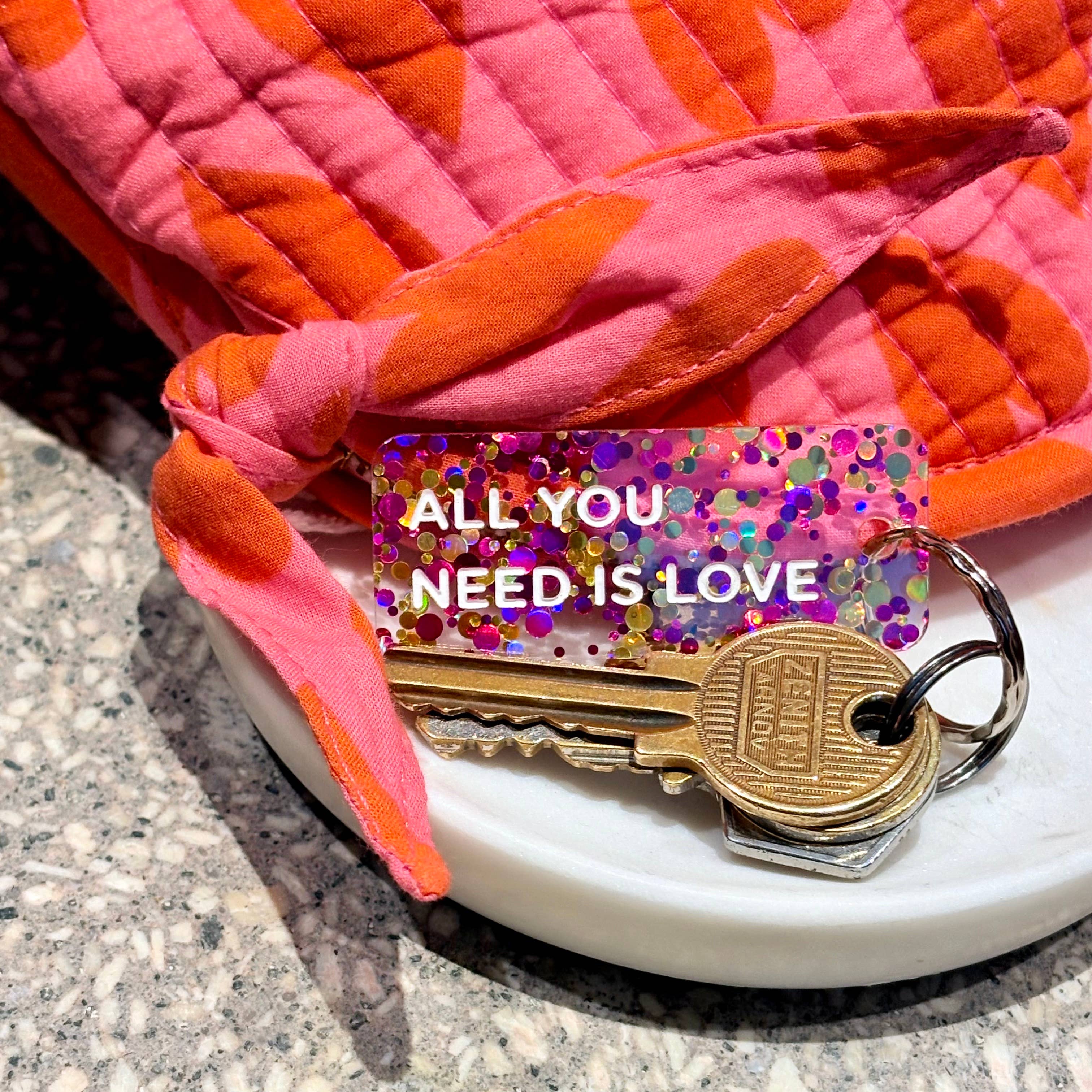 ALL YOU NEED IS LOVE Porte-clés à paillettes Plus de Love: Violet / Or / Vert