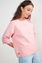 Ce cardigan femme rose chiné signé Grenadine, marque belge, séduit par sa maille douce et légère et son allure résolument féminine. Sa coupe droite légèrement ample et son boutonnage nacré sur le devant en font une pièce facile à porter, idéale au quotidien.