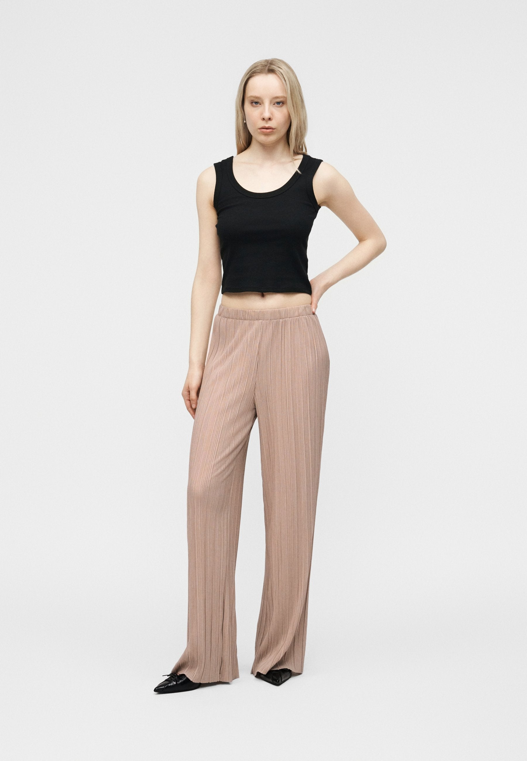 Gender: Female Manufacture: Circular Knit Manufacture Detail: Single Jersey Style Type: PANTS Fabric Name: VIPLISA-KNIT-PES/CV-SUS Composition: 50% Polyester - Recycled, 35% Viscose, 15% Polyester Weight: 150