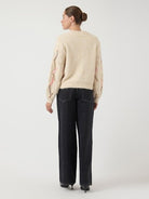 Optez pour notre Pull Femme en maille tricotée, une pièce alliant élégance et écologie. Fabriqué en polyester recyclé, laine RWS, et nylon, ce pull est parfait pour un look casual chic.